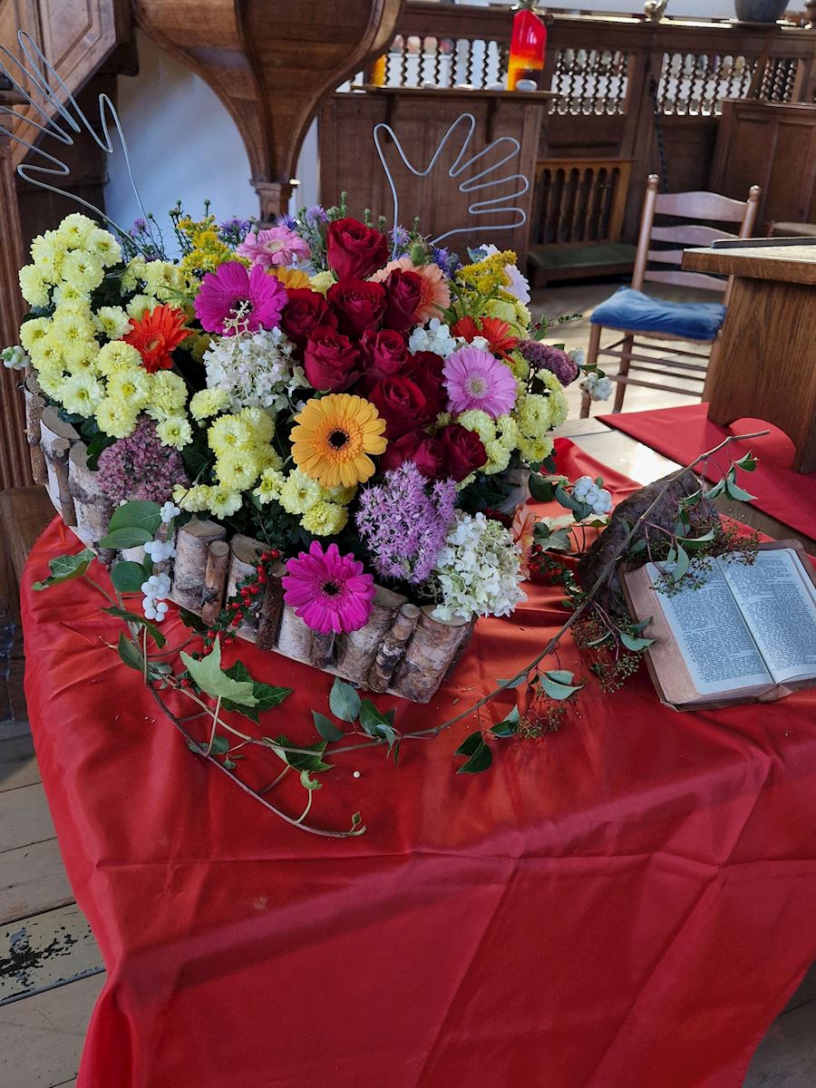 U ziet hier de kleur rood van Pinksteren, staat voor liefde, wijsheid, warmte, vrede.